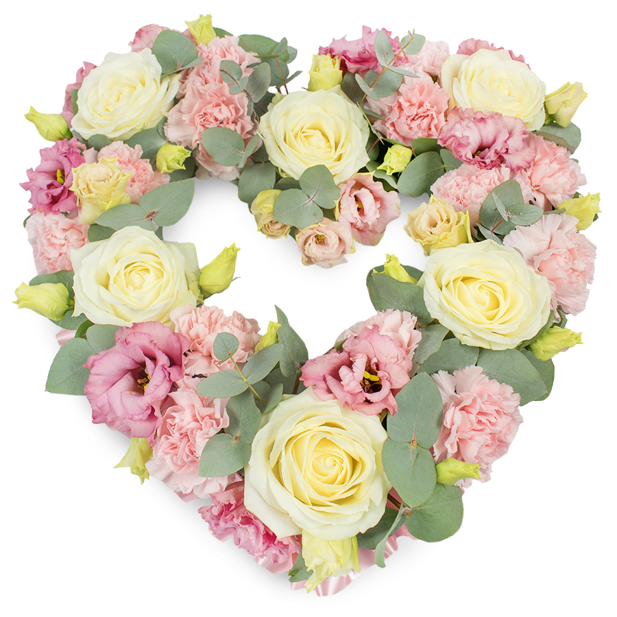 Show your deepest sympathies with our Graceful Memorial Arrangement. This exquisite bouquet features a harmonious blend of white roses, pink carnations, pink lisianthus, and eucalyptus leaves, thoughtfully designed to honor and remember your loved one.